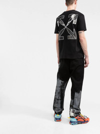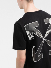 Caravaggio Arrow short-sleeve T-shirt Art is important in streetwear, and so for Virgil Abloh. This short-sleeve T-shirt is crafted from soft cotton and features a Caravaggio Arrow printed on the back - inspired by the Italian painter Michelangelo Merisi da Caravaggio, one of Off-White’s most referenced artists. Imported Composition Cotton 100% SIZE & FIT Model measurements Height 6 ft 2 in(1.88 m) Bust/Chest 37.79 in(96 cm) Hips 38.58 in(98 cm) Waist 29.52 in(75 cm) FittingInformation This piece fits true to size. We recommend you get your regular size Cut for a relaxed fit Made with a mid-weight fabric Washing instructions Machine Wash