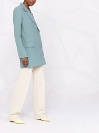 Cardbox wrap blazer A reinvention of the classic double-breasted silhouette, the Cardbox blazer showcases an elongated wrap-style design. Presented as part of Off-White’s AW21 collection, this piece captures the label’s contemporary visual style. Highlights - Blue - Recycled wool blend - Notched lapels - Front button fastening - Long sleeves - Two side flap pockets - American rear vent Made in Italy Composition Outer: Polyester 55%, Virgin Wool 45% Lining: Viscose 52%, Cupro 48% SIZE & FIT Model measurements Height 5 ft 11 in(1.8 m) Bust/Chest 31.49 in(80 cm) Hips 36.61 in(93 cm) Waist 24.4 in(62 cm) FittingInformation This piece fits true to size. We recommend you get your regular size Cut for a loose fit Made with a mid-weight non-stretch fabric