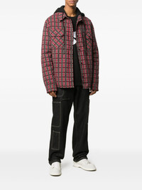 check-pattern hooded jacket Drizzly days are now welcome. This check pattern jacket from Off-White is topped with a hood, so you can face chilly days in style. Checkmate. Highlights - Red/black/grey - Cotton-blend - Check pattern - Drawstring hood - Front button fastening - Long sleeves - Two chest flap pockets - Two side button-fastening pockets Made in Italy Composition Cotton 95%, Polyester 3%, Polyamide 2% Washing instructions Read Manufacturer Guidelines