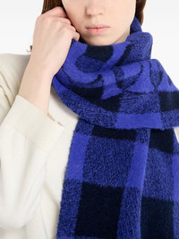 check-pattern fringed scarf Highlights - Blue - Check pattern - Fringed edge - Logo detail Imported Composition Polyamide 52%, Wool 47%, Elastane 1% Washing instructions Read Manufacturer Guidelines