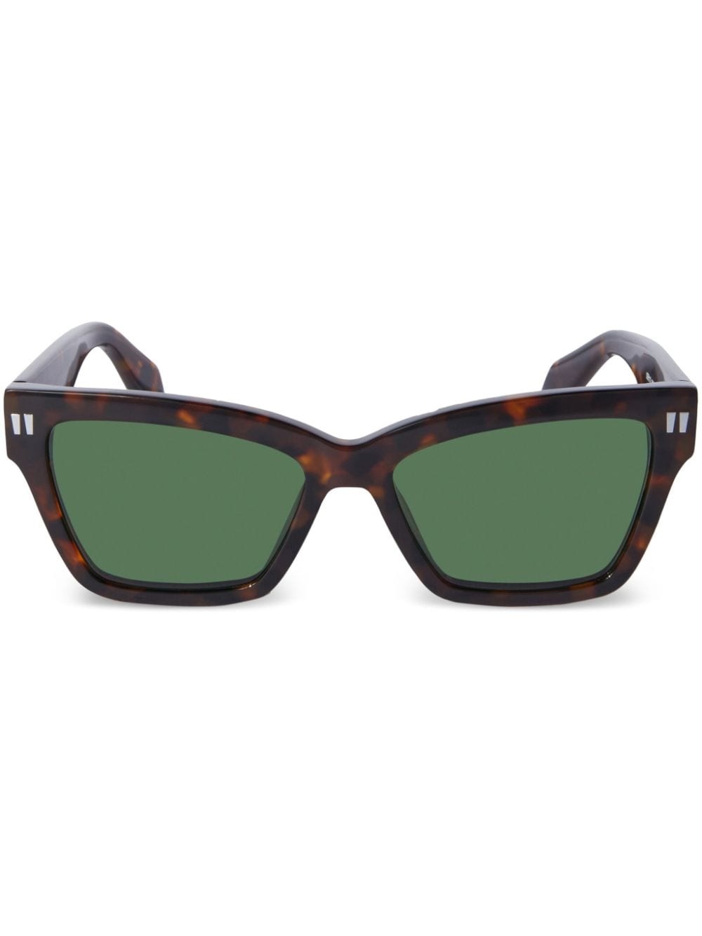Cincinnati rectangle-frame sunglasses Off-White's tortoiseshell-effect Cincinnati sunglasses are minimally printed with logo lettering on the arm. Highlights - Brown - Acetate - Tortoiseshell effect - Logo print at the arm - Rectangle frame - Green tinted lenses - Nose pads - Straight arms - Curved tips - These glasses come with a protective case. Made in Italy Composition Acetate 100%
