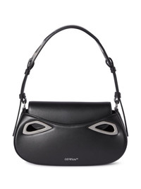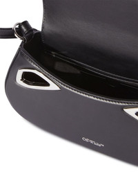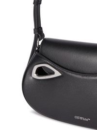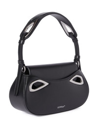 Clam shoulder bag Off White's Clam shoulder bag is distinguished by the oval flap-fastening silhouette that gives it its name. Silver-tone metal edges and a cut-out shoulder strap act as sleek yet futuristic elements against the black leather construction. Highlights - Black - Canvas/calf leather - Logo stamp to the front - Adjustable shoulder strap - Front flap closure - Silver-tone hardware Made in Italy Composition Lining: Cotton 95%, Acrylic 5% Outer: Calf Leather 100% SIZE & FIT Measurement DEPTH 3.14 in(8 cm) HANDLE 5.9 in(15 cm) HEIGHT 5.11 in(13 cm) STRAP 17.71 in(45 cm) WIDTH 10.23 in(26 cm)