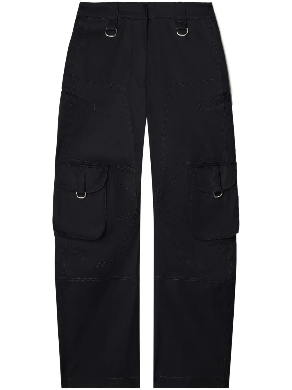 straight-leg cotton cargo trousers Off-White plays into the utilitarian aesthetic with these cargo trousers. Imagined in a black hue and embellished with silver-tone D-ring findings, they are crafted from cotton to a straight-leg silhouette with multiple pockets. Highlights - Black - Cotton - Straight leg - D-ring findings - Belt loops - Concealed front fastening - Two side slit pockets - Two side cargo pockets - Rear welt pocket - Rear flap pocket Made in Italy Composition Cotton 100%