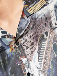 collage-print short-sleeve shirt Highlights - Blue - Short sleeves - Revere collar - Collage print - Eagle motif - Architectural print Made in Italy Composition Outer: Viscose 100% Washing instructions Read Manufacturer Guidelines