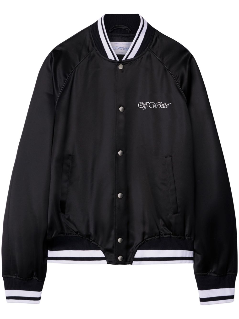College satin bomber jacket Highlights - Black - Satin finish - Embroidered logo at the chest - Embroidered logo to the rear - Ribbed band collar - Front press-stud fastening - Long sleeves - Ribbed cuffs and hem - Two side welt pockets - Straight hem Made in Italy Composition Outer: Viscose 100% Lining: Viscose 100%