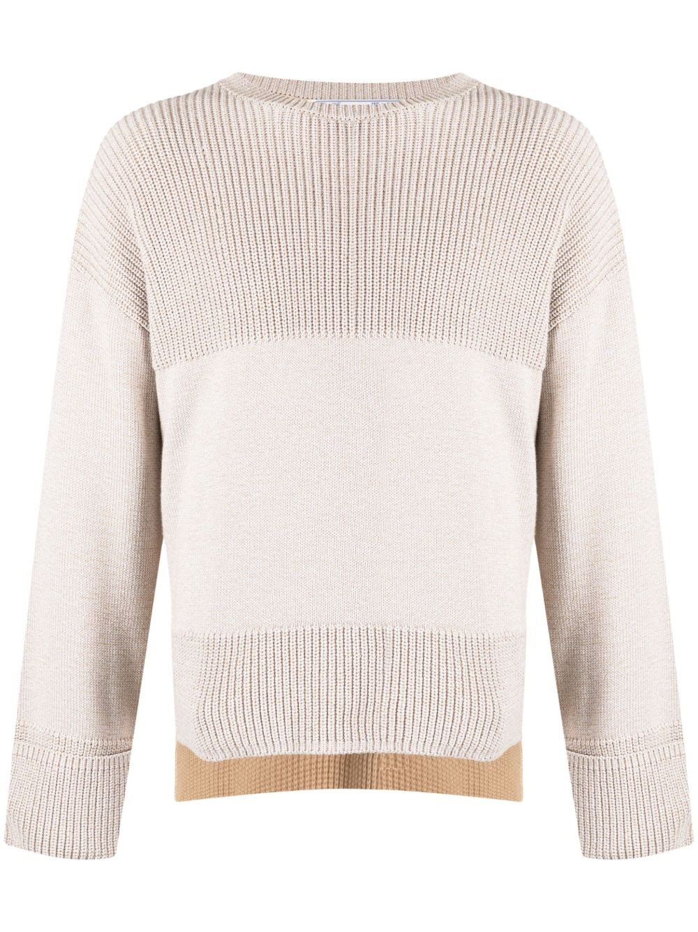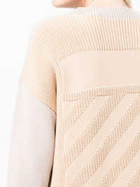 colour-block ribbed-knit jumper Crafted from a soft cotton blend, this OFF-WHITE jumper is punctuated by its colour-block design. The ribbed knit on the back is shaped in the house's signature Diag-stripe print for a distinctive branding note. Highlights - Light grey/sand beige - Cotton blend - Ribbed knit - Colour-block design - Signature diag-stripe print - Crew neck - Drop shoulder - Long sleeves - Turn-up cuffs - Straight hem Made in Italy Composition Cotton 67%, Polyester 33% SIZE & FIT Model measurements Height 5 ft 9 in(1.76 m) Bust/Chest 31.1 in(79 cm) Hips 35.03 in(89 cm) Waist 24.4 in(62 cm) FittingInformation Designed to be unstructured, offering a loose fit throughout Constructed with additional length on the sleeve Made with a midweight knit, this piece offers some stretch This piece fits true to size – take your usual size