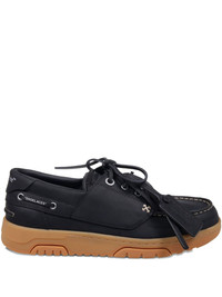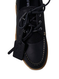 contrast-stitch boat shoes Highlights - Black - Lace-up fastening - Contrast rubber sole - Strap detailing - Logo tag Imported Composition Outer: Recycled Polyester 50%, Bovine Leather 50% Lining: Fabric 100% Sole: Rubber 100%
