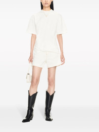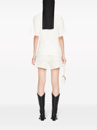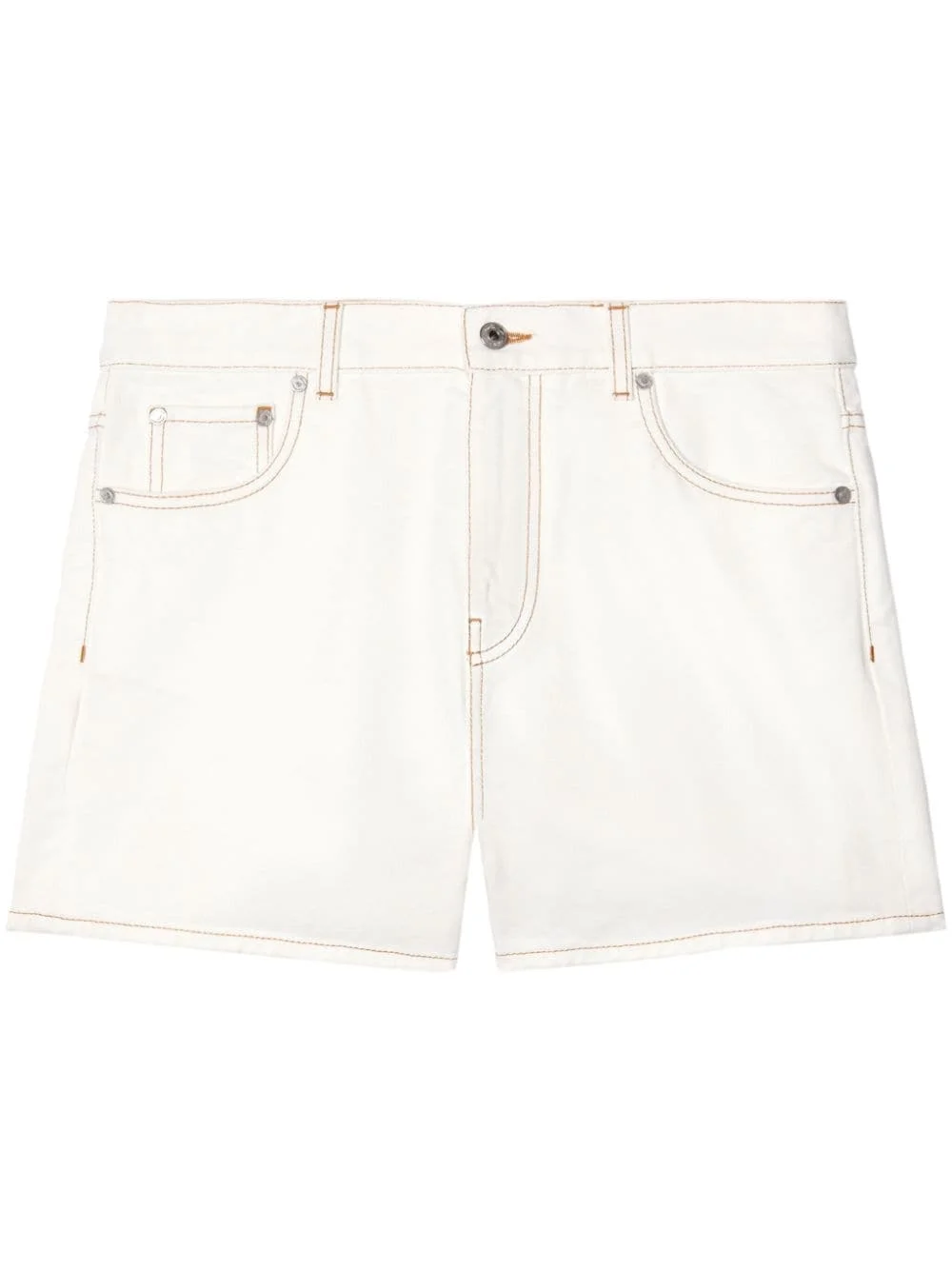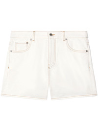 contrast-stitching denim shorts Made from white denim with contrasting camel stitching, these Off-White shorts update a classic silhouette with practical flap pockets at the back. Highlights - White - Cotton - Denim - Contrast stitching - Mid-rise - Belt loops - Concealed fly and button fastening - Rear flap pocket - Thigh-length Made in Italy Composition Cotton 100% Washing instructions Read Manufacturer Guidelines
