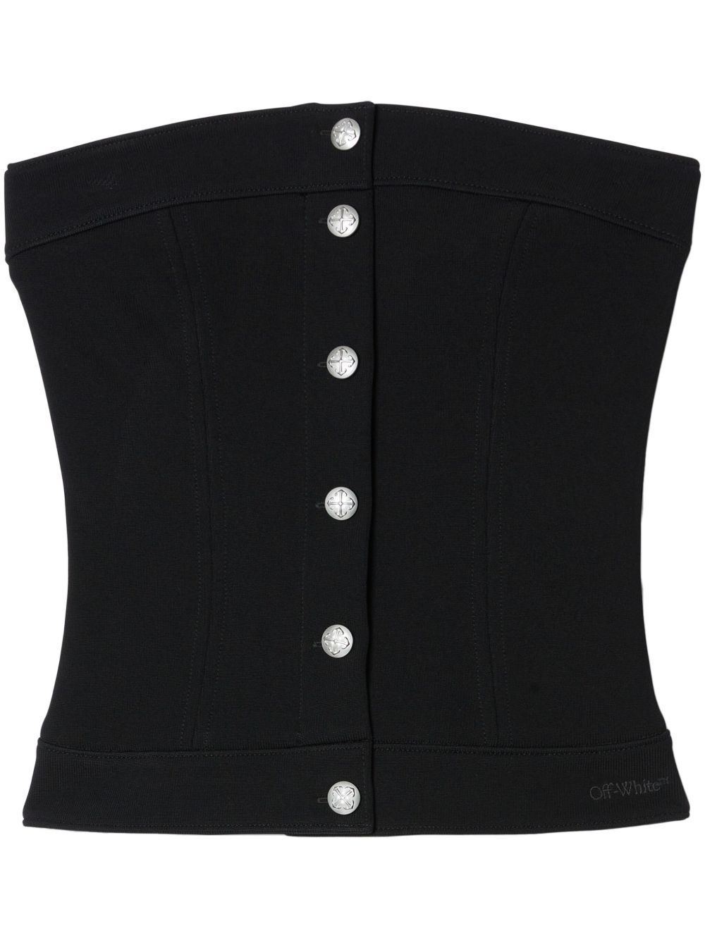 corset-style top Highlights - Black - Front button fastening - Logo-engraved buttons - Strapless - Square neck Made in Italy Composition Viscose 61%, Polyamide 33%, Spandex/Elastane 6%