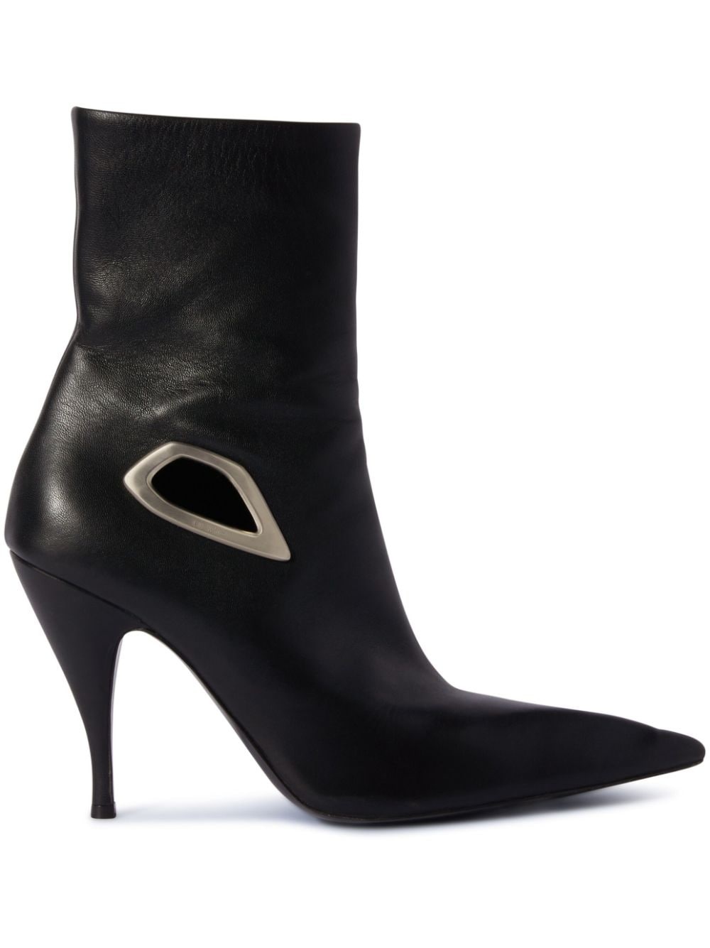 Crescent ankle boots Constructed from smooth black leather, these Off-White boots are defined by their crescent cut-outs at the side, trimmed with silver-tone hardware. Highlights - Black - Leather - Cut-out detailing - Silver-tone hardware - Rear zip fastening - Pointed toe - High stiletto heel Made in Italy Composition Outer: Leather 100% Lining: Leather 100% Sole: Leather 100% SIZE & FIT Measurement HEEL 3.93 in(10 cm)