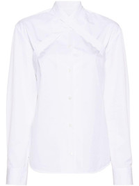 cross-collar cotton-poplin shirt Highlights - White - Cotton - Poplin texture - Crossover neck straps - Long sleeves - Buttoned cuffs - Front button fastening - Curved hem Made in Italy Composition Cotton 100% SIZE & FIT Model measurements Height 5 ft 9 in(1.76 m) Bust/Chest 33.07 in(84 cm) Hips 34.64 in(88 cm) Waist 25.59 in(65 cm) Measurement SLEEVE LENGTH 19.29 in(49 cm) LENGTH 29.33 in(74.5 cm) WAIST 38.58 in(98 cm) BUST 39.37 in(100 cm) FittingInformation Designed to be unstructured, offering a loose fit throughout The belt offers adjustability for fitted preferences Made from a midweight non-stretch fabric This piece fits true to size – take your usual size Washing instructions Hand Wash