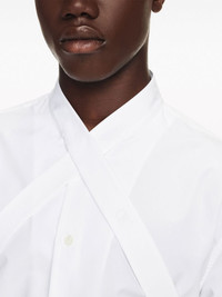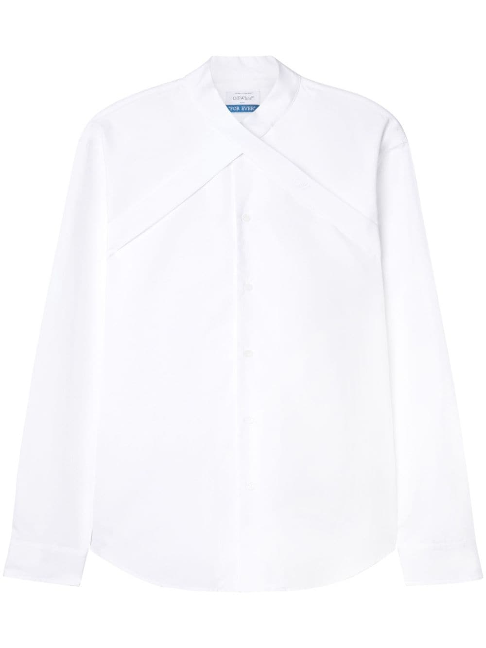 crossover-collar cotton shirt Off-White's SS24 collection, Homecoming, takes a focus on movement and the label's 'fundamentals'. This crisp cotton shirt, rendered in white, is elevated with a crossover collar. Highlights - White - Cotton - Crossover neck - Long sleeves - Front button fastening - Curved hem Made in Italy Composition Cotton 100% Washing instructions Read Manufacturer Guidelines