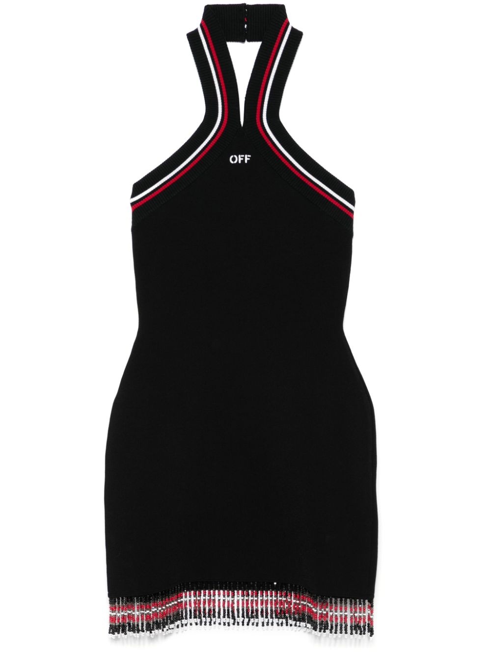 crossover-straps mini dress Highlights - Black - Wool blend - Knitted construction - Rear button fastening - Striped ribbed trim - Halterneck - Embroidered logo to the front - Sleeveless - Fitted waistline - Bead detailing - Straight hem - Thigh-length Made in Italy Composition glass 100%, Viscose 88%, Wool 50%, Acrylic 50%, Polyester 12% SIZE & FIT Model measurements Height 5 ft 11 in(1.8 m) Bust/Chest 31.49 in(80 cm) Hips 36.61 in(93 cm) Waist 24.4 in(62 cm) FittingInformation Designed for a close fit throughout Made with a heavyweight knit, this piece offers some stretch Washing instructions Dry Clean Only