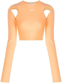 cut-out long-sleeve crop top Off-White updates a classic crew-neck silhouette with cut-outs and a contrasting logo print to the front, speaking to the brand's contemporary approach and signature use of branding graphics. Made in Italy Composition Polyamide 86%, Spandex/Elastane 14% SIZE & FIT Model measurements Height 5 ft 10 in(1.79 m) Bust/Chest 31.1 in(79 cm) Hips 35.03 in(89 cm) Waist 24.01 in(61 cm) FittingInformation This piece fits true to size. We recommend you get your regular size Cut for a slim fit Made with a mid-weight stretch fabric Washing instructions Machine Wash