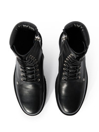 Diag-sole lace-up combat boots A recurring element throughout Off-White’s collections, the Diag-stripe motif takes a different shape in these lace-up combat boots. Diagonal stripes are carved in the pair's sole for a subtle recognisable touch. Highlights - Black - Leather - Eyelet detailing - Debossed logo to the side - Round toe - Front lace-up fastening - Padded ankle - Side zip fastening - Ridged rubber sole Made in Italy Composition Sole: Rubber 100% Lining: Leather 100% Outer: Leather 100%