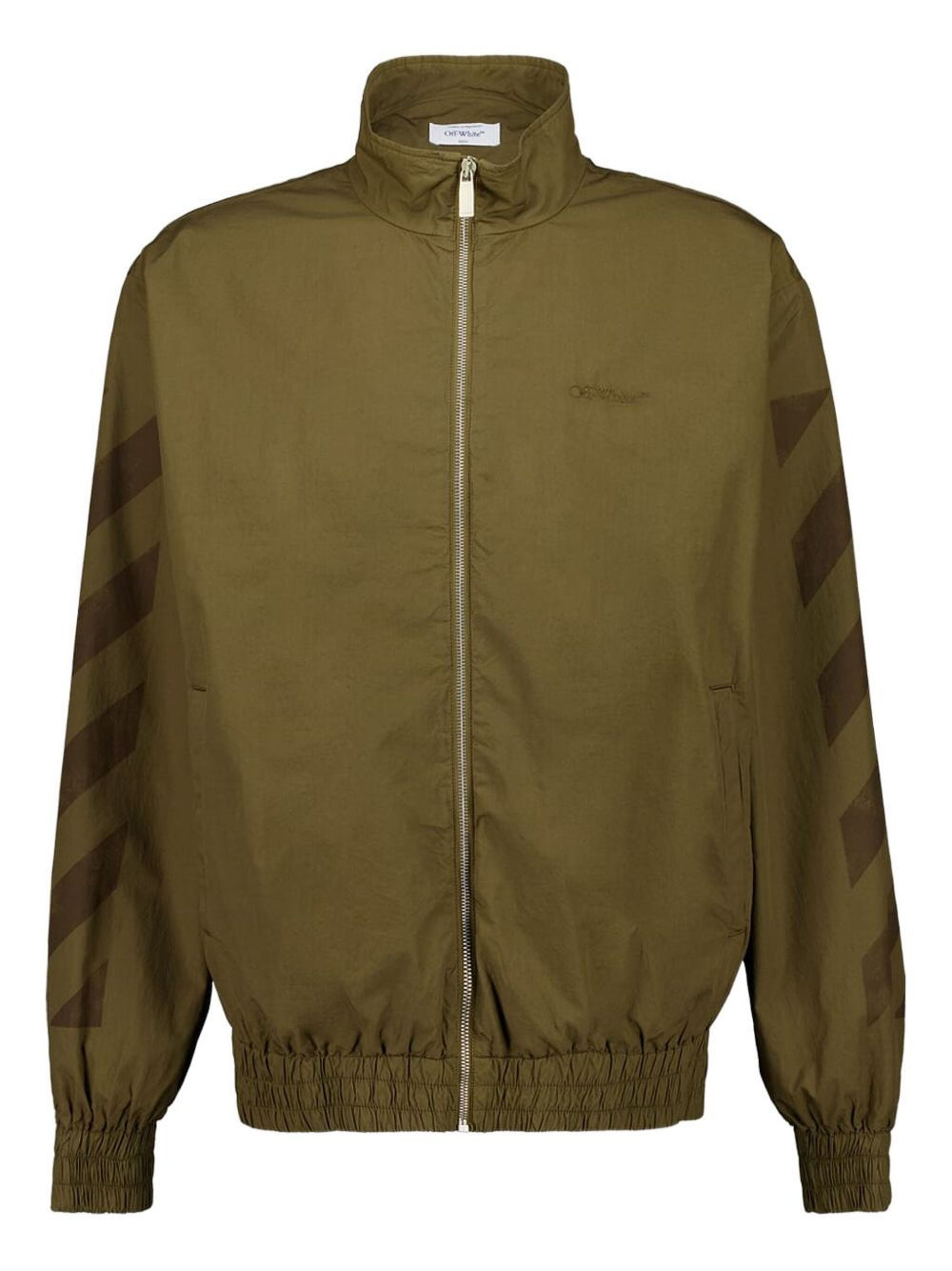 Diag-stripe jacket Highlights - Army green - Diag-stripe detail - Zip fastening - High neck - Elasticated hem and cuffs Made in Italy Composition Outer: Cotton 100% Lining: Polyamide 100% Washing instructions Read Manufacturer Guidelines