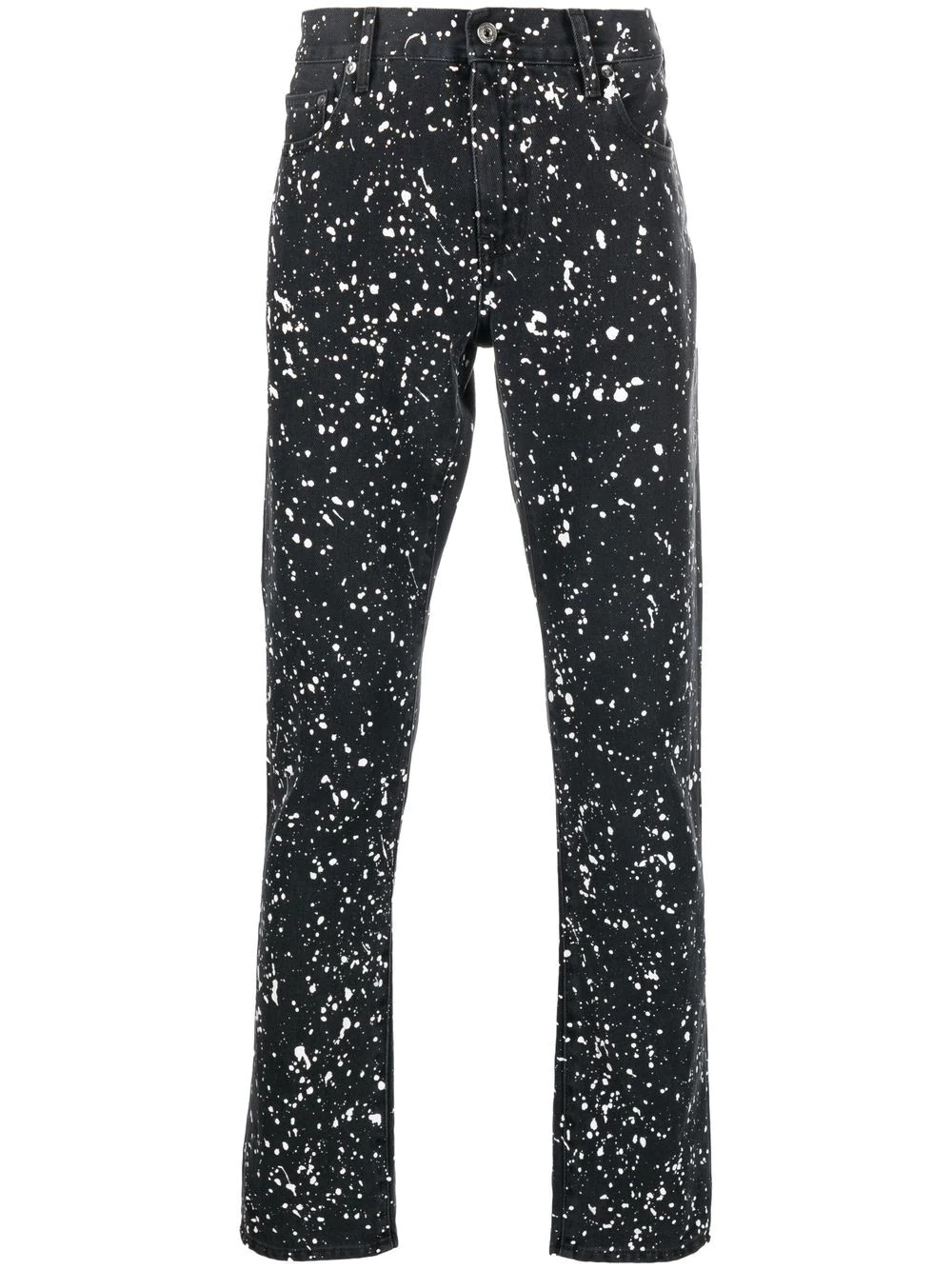 Diag-stripe paint-splatter skinny jeans Diag-stripe paint-splatter skinny jeans from OFF-WHITE featuring black, cotton, spray-paint effect, signature Diag-stripe print, logo patch to the rear, skinny cut, belt loops, classic five pockets and front button and zip fastening. Made in Italy Composition Outer: Cotton 100%, Acrylic 50%, Wool 50% Lining: Polyester 65%, Cotton 35% SIZE & FIT Model measurements Height 6 ft 2 in(1.89 m) Bust/Chest 37.79 in(96 cm) Hips 37 in(94 cm) Waist 29.92 in(76 cm) Washing instructions Hand Wash
