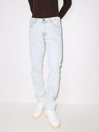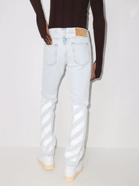 Diag-stripe print slim fit jeans A key Off-White motif, the Diag motif can be seen throughout the brand's collections. It makes a subtle appearance to the rear of these jeans, adding to the contemporary feel of this classic silhouette. Made in Italy Composition Outer: Cotton 100% Lining: Polyester 65%, Cotton 35%