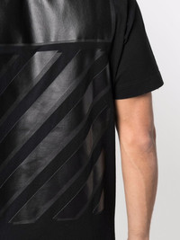 Diag Tab T-shirt Off-White takes a more understated approach to branding with this T-shirt. A tonal black design allows the logo graphics to the front and rear to make a subtle appearance. Imported Composition Cotton 100% SIZE & FIT Model measurements Height 6 ft 1 in(1.85 m) Bust/Chest 37.79 in(96 cm) Hips 37.4 in(95 cm) Waist 30.7 in(78 cm) FittingInformation This piece fits true to size. We recommend you get your regular size Cut for a relaxed fit Made with a mid-weight fabric Washing instructions Machine Wash