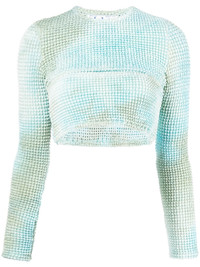 Double tie-dye cut-out top Highlights - Blue - Smocking details - Tie-dye print - Round neck - Long sleeves - Cut-out detailing - Cropped - Straight hem Made in Italy Composition Viscose 100% SIZE & FIT Model measurements Height 5 ft 10 in(1.78 m) Bust/Chest 30.7 in(78 cm) Hips 34.64 in(88 cm) Waist 23.22 in(59 cm) Washing instructions Dry Clean Only
