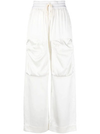 Duchesse Cargo trousers Off-White showcases utilitarian influences for AW22, whilst maintaining their futuristic design style. Showcasing the concept, these cargo trousers are presented as a wide-leg silhouette, whilst the exaggerated front pockets contribute to their modern look. Made in Italy Composition Outer: Viscose 100%, Virgin Wool 91%, Polyamide 6%, Elastane 3% Lining: Cotton 100% SIZE & FIT Model measurements Height 5 ft 11 in(1.8 m) Bust/Chest 33.07 in(84 cm) Hips 37.4 in(95 cm) Waist 25.19 in(64 cm) FittingInformation This piece fits true to size. We recommend you get your regular size Designed to be fitted at the waist, loose over the leg Made with a mid-weight non-stretch fabric Washing instructions Dry Clean Only