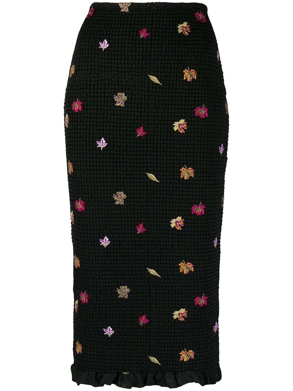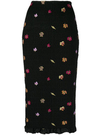 embroidered-leaves mid-length skirt
