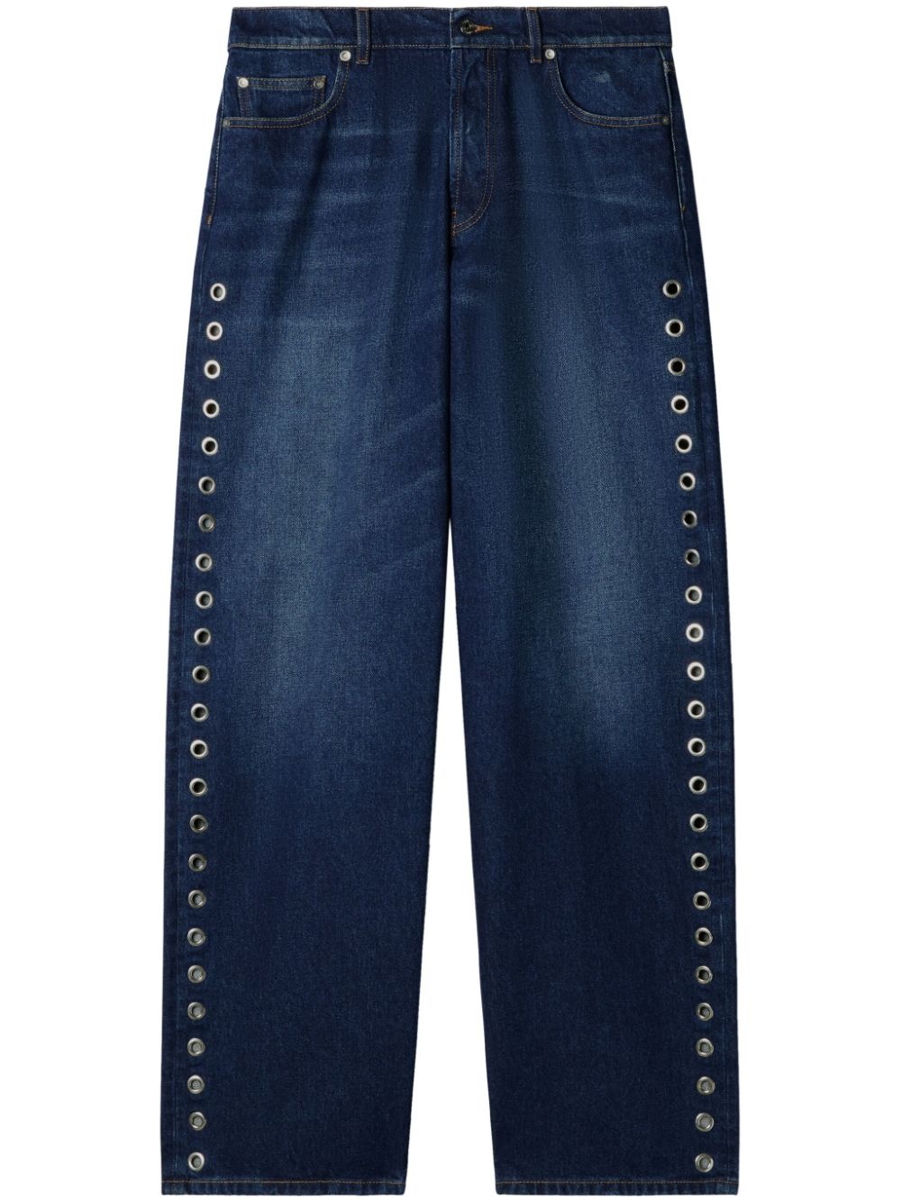 eyelet loose-fit jeans Off-White's penchant for industrial details comes to the fore with these indigo jeans; they’re traced with silver-tone eyelets down the legs for an edgy touch. Highlights - Indigo blue - Cotton - Denim - Dark wash - Faded effect - Whiskering effect - Metal eyelet detailing - Silver-tone hardware - Belt loops - Concealed fly and button fastening - Classic five pockets Made in Italy Composition Lining: Polyester 65%, Cotton 35% Outer: Cotton 100%