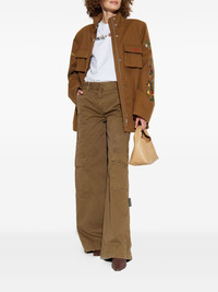 floral-arrow print utility jacket Highlights - Brown - Floral print - Arrow motif - Multiple pockets - High neck - Long sleeves Imported Composition Cotton 100% Washing instructions Read Manufacturer Guidelines