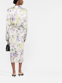 floral-print dress Off-White presents a sophisticated style with this mid-length dress. Decorated with an all-over floral print, this elegant silhouette features a classic collar and draped detailing for a refined touch. Made in Italy Composition Polyester 97%, Elastane 3%