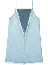 frayed denim mini dress Highlights - Blue - Embroidered logo at the chest - Square neck - Spaghetti straps - Sleeveless Made in Italy Composition Cotton 100% Washing instructions Read Manufacturer Guidelines