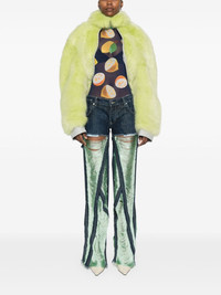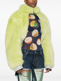 Fuzzy bolero Highlights - Lime green - Faux-fur design - Buckle fastening to the neck - Open front - High neck - Leather trim - Long sleeves - Full lining - Straight hem - Cropped Made in Italy Composition Outer: Lamb Skin 100%, Modacrylic 54%, Acrylic 38%, Polyester 8% Lining: Polyester 100%, Viscose 52%, Cupro 48% Washing instructions Specialist Cleaning