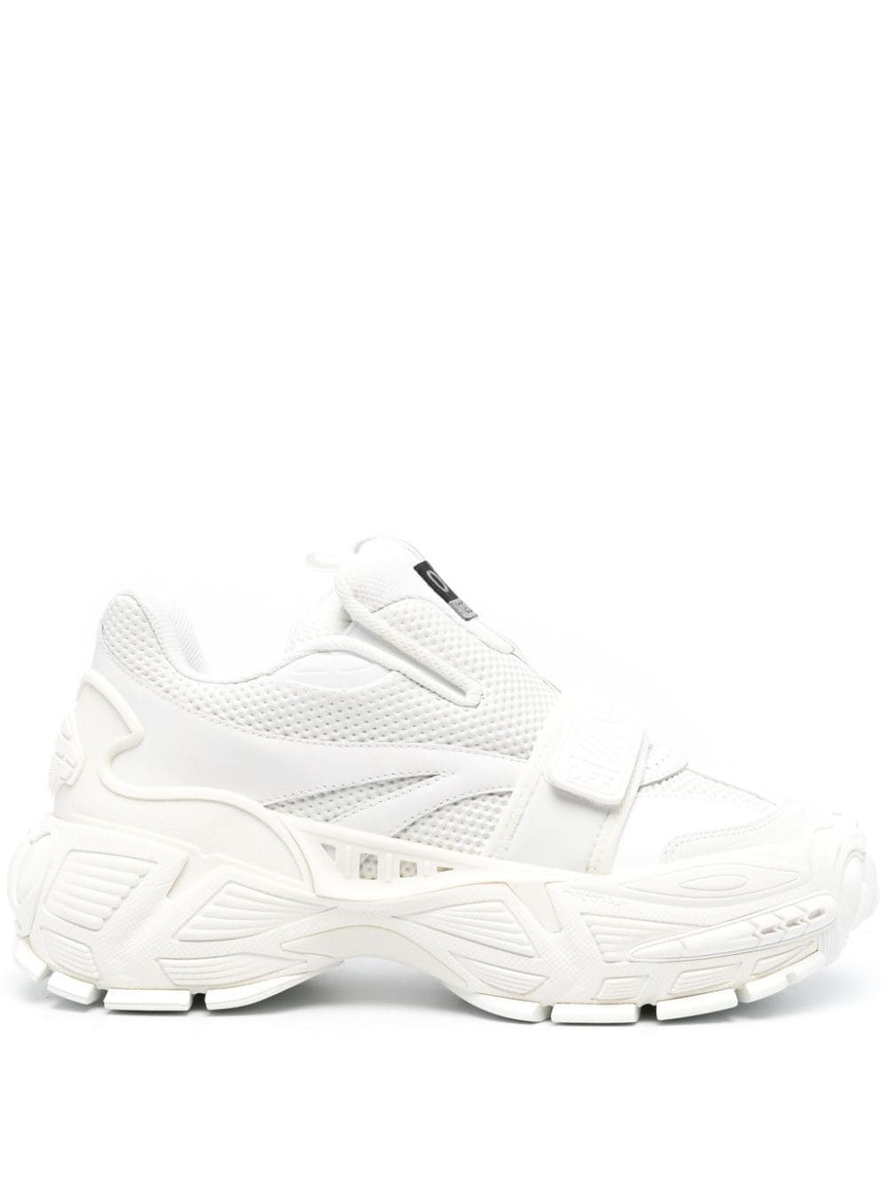Glove slip-on sneakers Off-White injects a futuristic aesthetic into these Glove sneakers. Sitting atop a chunky rubber sole, they boast an upper comprised of white mesh topped with leather overlays. A plethora of branded motifs adorn its tongue, strap and rear. Highlights - Optical white - Panelled design - Round toe - Double tongue - Logo patch at the tongue - Adjustable logo-embossed strap to the front - Padded ankle - Branded insole - Chunky rubber sole - Slip-on style Imported Composition Outer: Fabric 100%, Calf Leather 100% Lining: Fabric 100% Sole: Rubber 100% SIZE & FIT Measurement HEEL 2.75 in(7 cm) PLATFORM 1.77 in(4.5 cm)