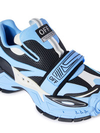 Glove slip-on sneakers Off-White injects a futuristic aesthetic into these Glove sneakers. Sitting atop a chunky rubber sole, they boast an upper comprised of light blue and black mesh topped with leather overlays. A plethora of branded motifs adorns its tongue, strap and rear. Highlights - Light blue/black - Panelled design - Mesh panelling - Logo patch at the tongue - Logo-embossed strap - Branded heel counter - Round toe - Front touch-strap fastening - Pull-tab at the tongue - Branded insole - Chunky rubber sole Made in Italy Composition Leather 100%