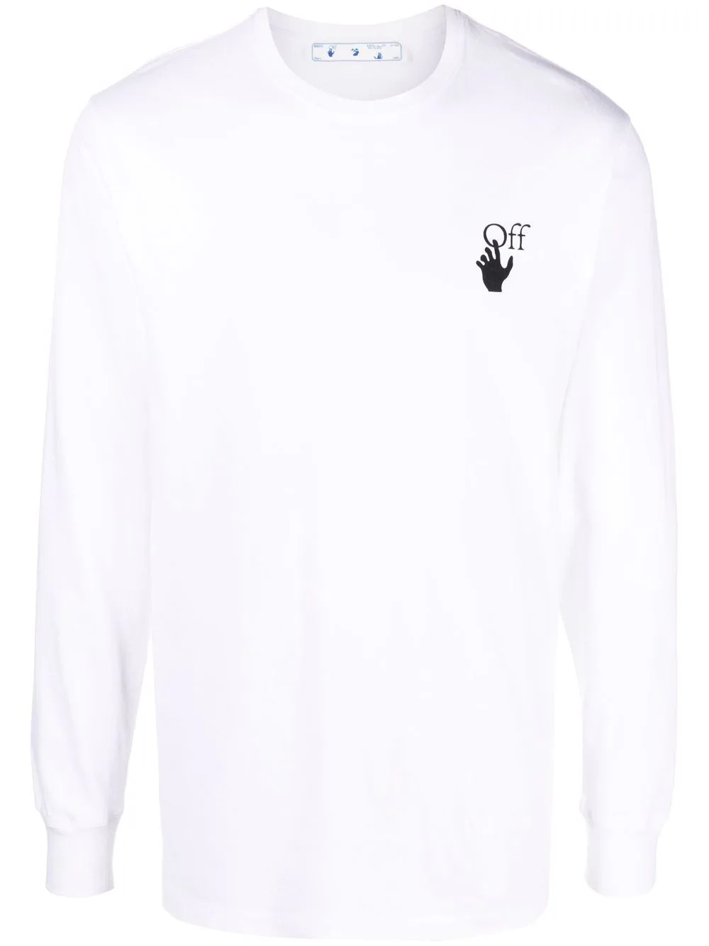 gradient Arrows-motif longsleeved T-shirt This basic slim fit longlseeved T-shirt is emblazoned with a gradient Arrows motif on the back for a look that is instantly recognisable as Off-White. A subtle Hands-off logo features on the front. Highlights - White - Cotton - Signature hands off logo - Logo print to the front - Signature arrows motif - Logo print to the rear - Round neck - Long sleeves - Cuff sleeves - Straight hem Imported Composition Cotton 100% SIZE & FIT Model measurements Height 6 ft 1 in(1.85 m) Bust/Chest 34.64 in(88 cm) Hips 34.25 in(87 cm) Waist 27.55 in(70 cm) FittingInformation This piece fits true to size. We recommend you get your regular size Cut for a relaxed fit Made with a mid-weight fabric Washing instructions Machine Wash