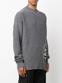 Graffiti chunky-knit jumper Streetwear label Off-White offers its signature effortless style with this chunky-knit jumper for AW22. Imagined in a grey hue, this long-sleeve design is defined by a graffiti print, which highlight's the brand casual and modern ethos. Made in Italy Composition Virgin Wool 100% SIZE & FIT Model measurements Height 6 ft 2 in(1.87 m) Bust/Chest 38.18 in(97 cm) Hips 36.61 in(93 cm) Waist 29.13 in(74 cm) Washing instructions Dry Clean Only