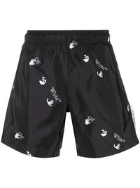 Hands-Off print swim shorts The perfect accessory for your holidays? These Off-White swim shorts, of course. With an all-over logo print, we're pretty sure you'll be relaxing by the pool in style. Made in Italy Composition Outer: Polyester 100% Lining: Polyamide 93%, Spandex/Elastane 7% Washing instructions Machine Wash