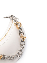 Hemisphere leather shoulder bag Made from smooth white leather, Off-White's Hemisphere bag is defined by the mixed-metal chunky chain shoulder strap. It offers a statement touch to the rounded silhouette. Highlights - Cream white - Calf leather - Smooth grain - Debossed logo to the front - Adjustable shoulder strap - Detachable chain-link shoulder strap - Signature arrows motif at the shoulder strap - Main compartment - Internal card slot - Debossed internal logo - Full lining - Top zip fastening - This piece comes complete with a protective dust bag. Made in Italy Composition Lining: Cotton 95%, Acrylic 5% Outer: Leather 100% SIZE & FIT Model measurements Height 5 ft 10 in(1.78 m) Bust/Chest 33.07 in(84 cm) Hips 35.82 in(91 cm) Waist 25.98 in(66 cm) Measurement DEPTH 1.18 in(3 cm) HEIGHT 7.87 in(20 cm) STRAP 7.87 in(20 cm) WIDTH 11.02 in(28 cm)
