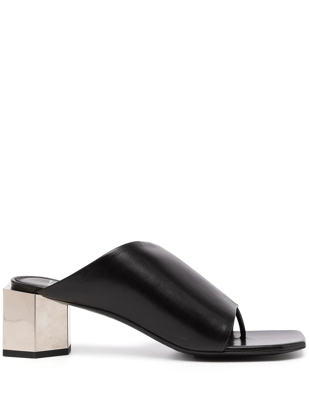 55mm Hexnut chunky-heel sandals No wonder summer’s your favourite season. It’s the perfect time for you to show off your new Off-White sandals and their distinctive chunky-heel design. Sunset-ready. Highlights - Black - Debossed logo - Branded insole - Slip-on style - Open toe Made in Italy Composition Outer: Leather 100% Sole: Leather 100% Inner: Leather 100% SIZE & FIT Measurement HEEL 2.16 in(5.5 cm) Sole height 0.39 in(1 cm)