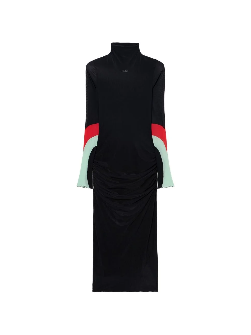 high-neck insert dress Highlights - Black - Contrasting sleeve panels - High neck - Ruched detail - Long sleeves Made in Italy Composition Polyamide 77%, Spandex/Elastane 23% Washing instructions Read Manufacturer Guidelines