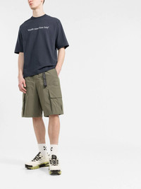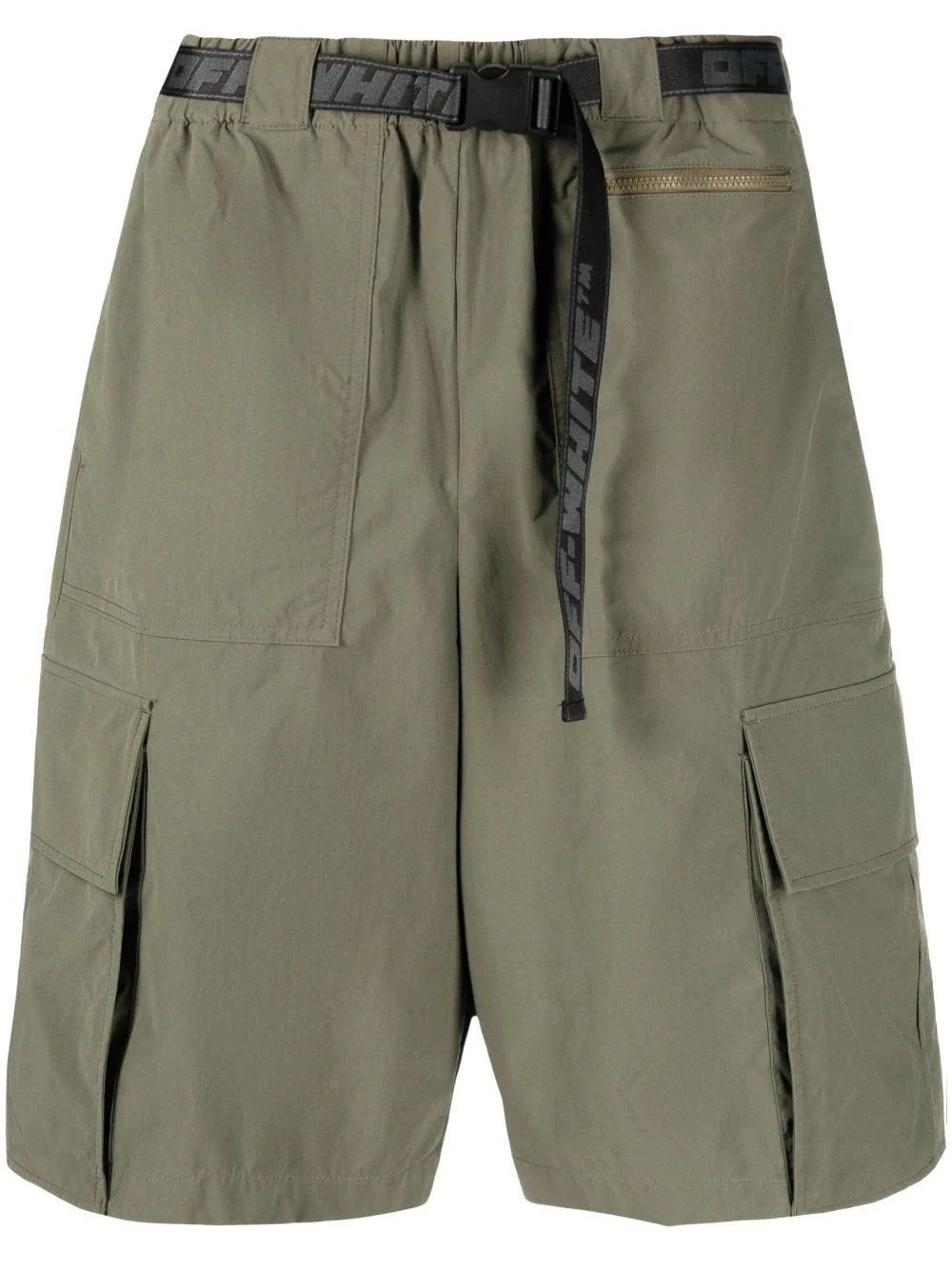 industrial-belt cargo shorts Off-White's affinity for industrial-inspired designs is evident in these utilitarian shorts. The relaxed silhouette features multiple practical pockets, and is finished with a logo-printed belt on the front half. Made in Italy Composition Polyester 70%, Polyamide 30% SIZE & FIT Model measurements Height 6 ft 1 in(1.85 m) Bust/Chest 33.46 in(85 cm) Hips 38.18 in(97 cm) Waist 31.49 in(80 cm) FittingInformation This piece fits true to size. We recommend you get your regular size Designed for a slim fit at the waist and loose over the leg Made with a mid-weight non-stretch fabric Washing instructions Dry Clean Only