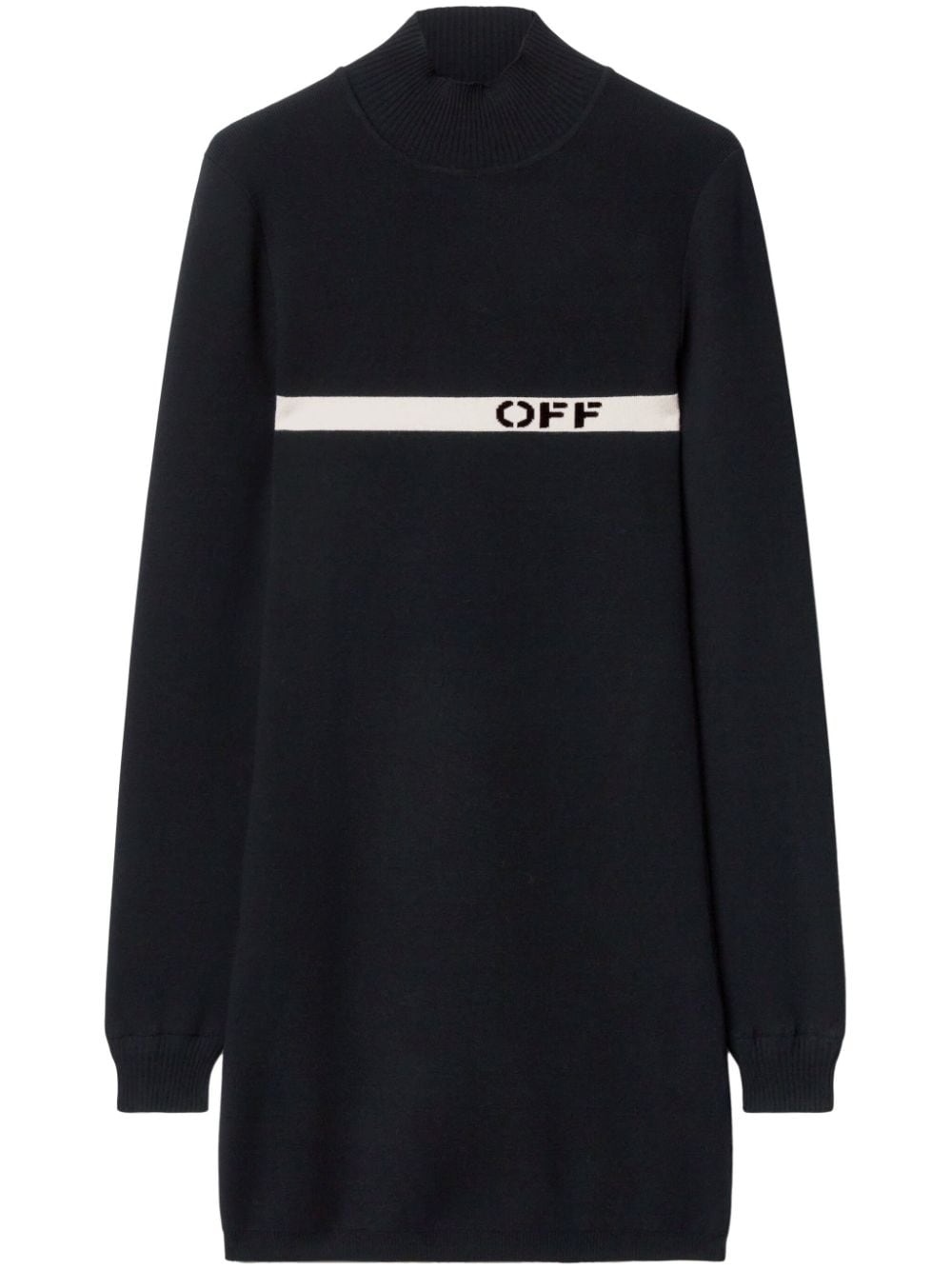 intarsia-knit logo dress Highlights - Black - Knitted construction - Intarsia-knit logo - Mock neck - Long sleeves - Thigh-length - Straight hem Made in Italy Composition Viscose 70%, Polyester 30%