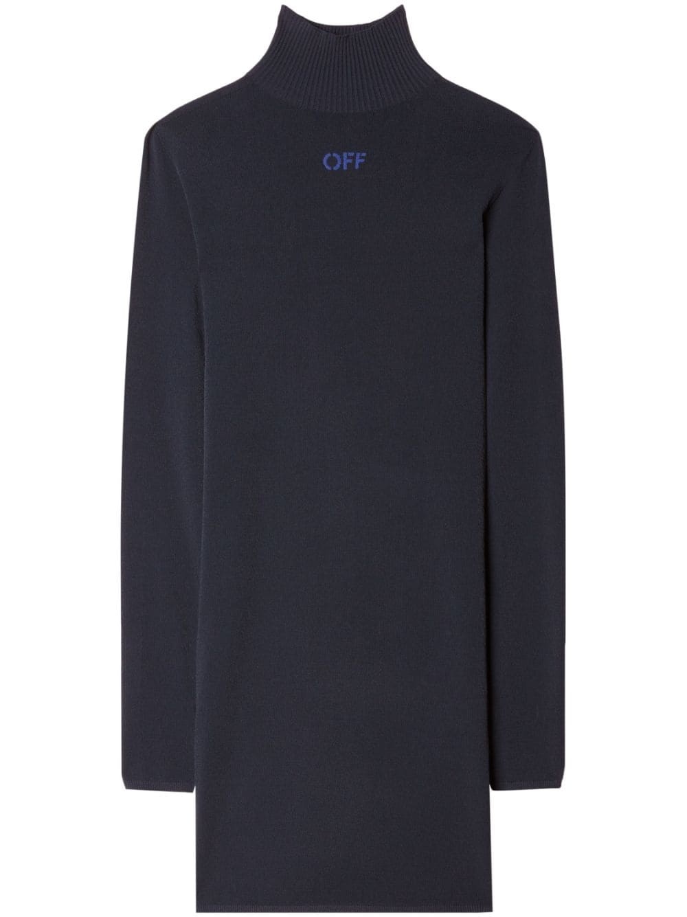 intarsia-knit minidress This fine-knit minidress showcases Off-White's minimalist side. Rendered in black, the intarsia knit design features the brand's signature logo lettering in cobalt blue. Highlights - Black/blue - Intarsia-knit logo - Mock neck - Long sleeves - Thigh-length Made in Italy Composition Viscose 83%, Polyester 17% SIZE & FIT FittingInformation Designed for a close fit throughout This piece fits true to size – take your usual size