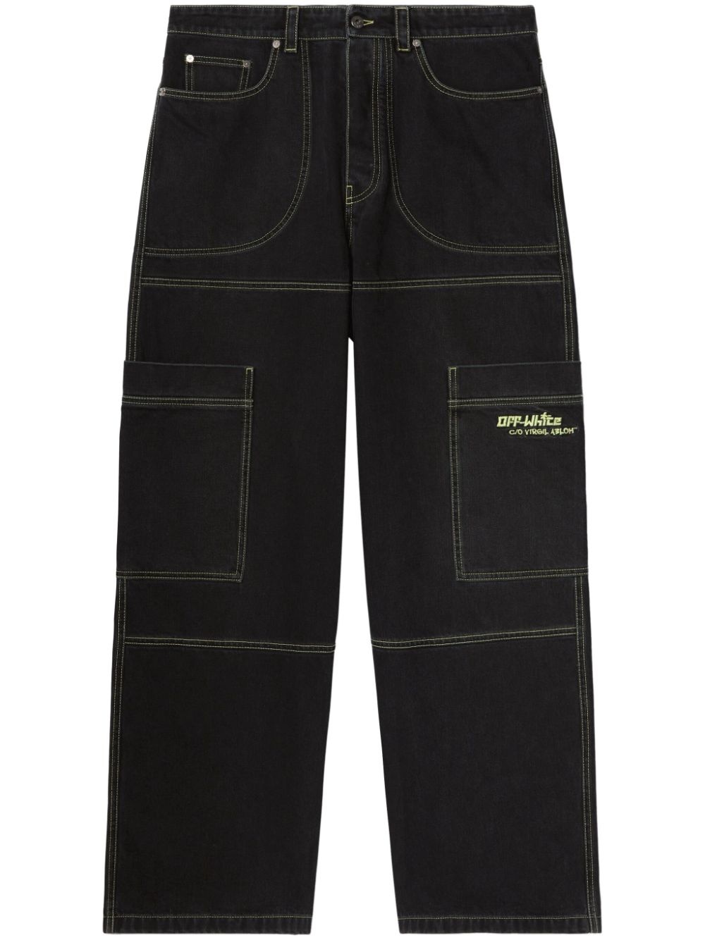 Irregular cargo jeans Highlights - Black - Concealed fly and button fastening - Classic five pockets - Two side patch pockets - Embroidered logo Made in Italy Composition Lining: Polyester 65%, Cotton 35% Outer: Cotton 100%