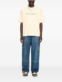 Irregular cargo jeans Highlights - Indigo blue - Concealed fly and button fastening - Classic five pockets - Two side patch pockets - Embroidered logo Made in Italy Composition Lining: Polyester 65%, Cotton 35% Outer: Cotton 100%