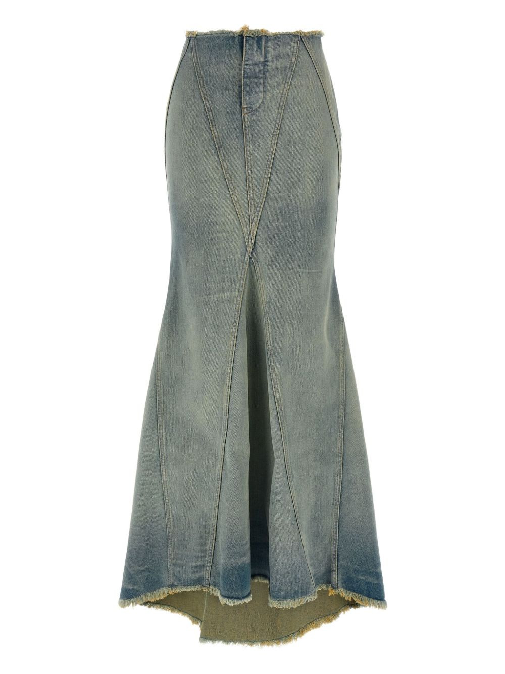 Jane fringed midi skirt Highlights - Light blue - Fringed waist - Fringed hem - Asymmetrical hem - Back print Made in Italy Composition Cotton 100% Washing instructions Read Manufacturer Guidelines