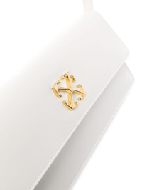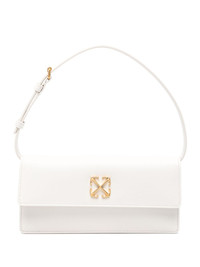 Jitney 1.0 shoulder bag Known for its geometrical clean lines, the Jitney has become one of Off-White's most celebrated silhouettes. The 1.0 iteration of the shoulder bag is rendered here in an all-white design and crafted from calf leather in Italy whilst an iconic Arrows plaque adorns the front. Highlights - White - Calf leather - Signature arrows motif - Foldover top - Slip pocket to the rear - Adjustable shoulder strap - Main compartment - Internal slip pocket - Contrast lining - Gold-tone hardware - Concealed magnetic fastening Made in Italy Composition Outer: Calf Leather 100% Lining: Polyurethane 56%, Polyester 44% SIZE & FIT Model measurements Height 5 ft 11 in(1.8 m) Bust/Chest 31.49 in(80 cm) Hips 36.22 in(92 cm) Waist 25.59 in(65 cm) Measurement DEPTH 1.96 in(5 cm) HEIGHT 4.72 in(12 cm) STRAP 18.5 in(47 cm) WIDTH 9.84 in(25 cm)