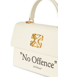 Jitney 1.4 quote-print bag Already known from the previous collections, the Jitney 1.4 bag is back with an updated finish. Crafted from calf leather and presenting a structural silhouette that nods to Virgil Abhloh's background in architecture, this accessory is finished with the label's signature Arrow logo and the brand's iconic 'No Offence' print. Highlights - Ivory white - Calf leather - Signature arrows motif - Text print - Gold-tone hardware - Single flat top handle - Detachable shoulder strap - Rear patch pocket - Foldover top with magnetic fastening - Main compartment Made in Italy Composition Outer: Calf Leather 100%