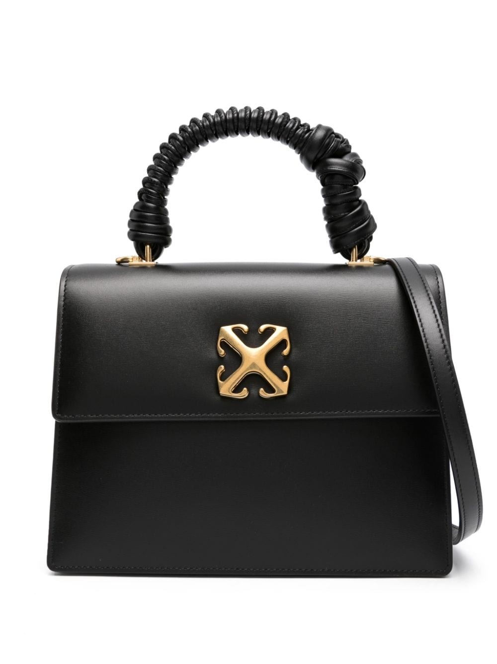 Jitney 2.8 leather tote bag One of Off-White's signature silhouettes, the Jitney 2.8 bag appears here in a minimalist iteration, presented in black leather with gold-tone accents. The structured design is emboldened by the brand's iconic Arrows logo on the front, as the coveted motif lends it an instantly recognisable touch. Highlights - Black - Calf leather - Smooth grain - Signature arrows motif - Logo stamp to the rear - Gold-tone hardware - Foldover top with magnetic fastening - Detachable shoulder strap - Single rope handle - Slip pocket to the rear - Main compartment - Internal slip pocket - Internal zip-fastening pocket - Internal card slot Made in Italy Composition Outer: Calf Leather 100% Lining: Calf Leather 100% SIZE & FIT Model measurements Height 5 ft 10 in(1.79 m) Bust/Chest 32.67 in(83 cm) Hips 34.25 in(87 cm) Waist 24.4 in(62 cm) Measurement DEPTH 3.93 in(10 cm) HANDLE 3.93 in(10 cm) HEIGHT 7.87 in(20 cm) STRAP 20.86 in(53 cm) WIDTH 9.84 in(25 cm)