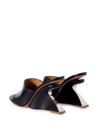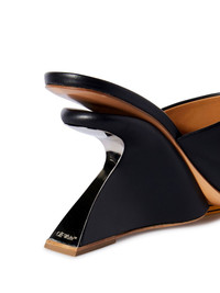 Jug wedge-heel leather sandals Made in Italy from smooth leather, this pair of contemporary mules by Off-White are characterised by their sculpted wedge heel which is engraved with subtle logo lettering at the rear. Highlights - Black - Leather - Single toe strap - Square open toe - Engraved logo - Branded footbed - High wedge heel Made in Italy Composition Outer: Leather 100% Lining: Leather 100% Sole: Leather 100%