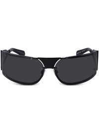 Kenema oversized sunglasses With a striking silhouette that screams Off-White, the Kenema sunglasses represent the brand's bold approach. The oversized round frame is adorned with a large, tonal bridge and sided with a logo engraved sculpted arm, another clue to the Italian brand's audacious spirit. Highlights - Black - Acetate - Oversize frame - Grey tinted lenses - Logo-engraved arm - Curved tips - These glasses come with a protective case. Made in Italy Composition Metal 50%, Polyamide 50% Washing instructions Read Manufacturer Guidelines